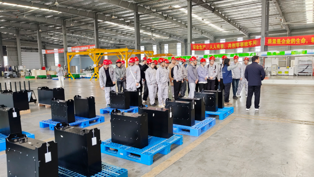 师生们先后参观了展厅、电芯生产车间和电池 PACK 组装线,近距离了解锂电池从电芯制造到模组集成、成品装配的完整生产流程,直观感受标准化生产、精细化管控现场。